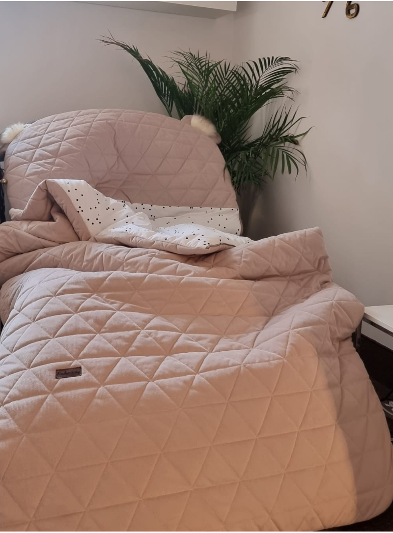 Śpiwór Kinder Hop dla nastolatka czy dorosłej osoby, to unikatowa pościel 3w1, która łączy w sobie funkcje prześcieradła, poduszki i kołdry, a połączenie miłego materiału wierzchniej warstwy Minky, ociepliny w postaci antyalergicznej włókniny silikonowej oraz miękkiej bawełny wewnątrz śpiwora sprawiają, że są one ciepłe i miękkie, aż chce się w nich zanurzyć.