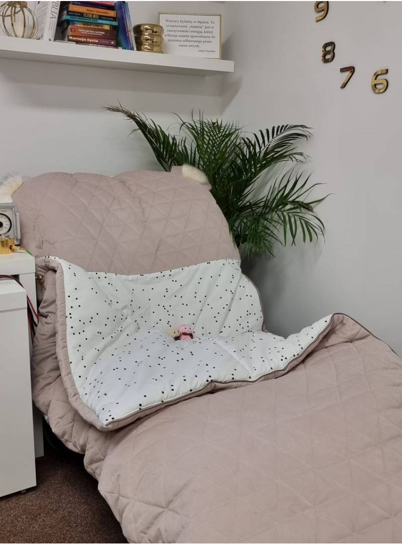 Śpiwór Kinder Hop dla nastolatka czy dorosłej osoby, to unikatowa pościel 3w1, która łączy w sobie funkcje prześcieradła, poduszki i kołdry, a połączenie miłego materiału wierzchniej warstwy Minky, ociepliny w postaci antyalergicznej włókniny silikonowej oraz miękkiej bawełny wewnątrz śpiwora sprawiają, że są one ciepłe i miękkie, aż chce się w nich zanurzyć.